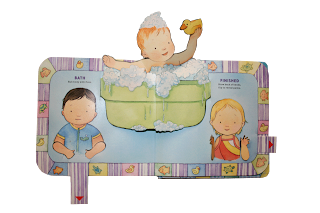 Naturally when I was asked to review the new book, Baby Signs I jumped at the opportunity to combine two of my favorite things, signing and books. Amazingly we didn’t have a book that incorporated signs yet and I love another outlet besides videos in which to learn new signs.This book is probably the most complex and spectacular book I’ve ever seen. The intricate pop ups are stunning. The detail is AMAZING!!! What more can I say? Just look at these photos to give you an idea of what I mean.