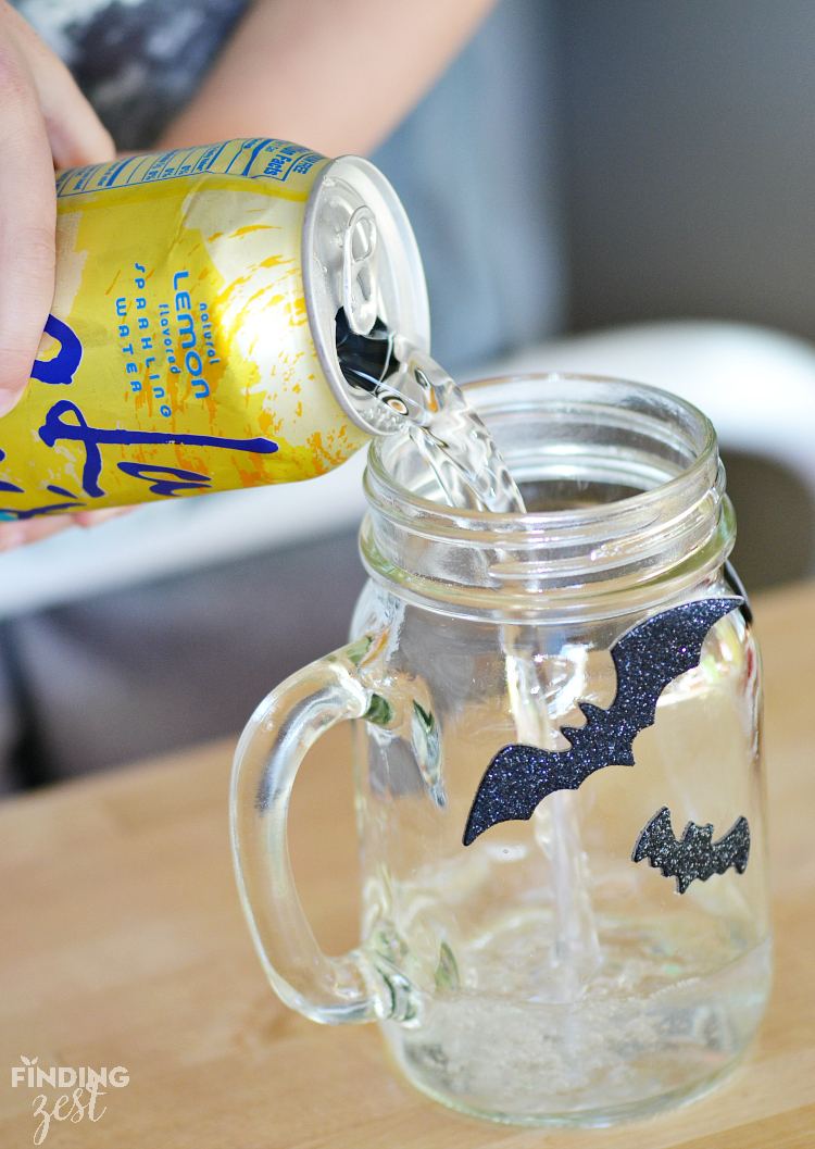 For the base of the drink I wanted something clear so you could really see the “blood” in the syringe so I used a unsweetened lemon flavored sparkling water. You could use any flavor that would pair well with your juice or you could go with a clear lemon-lime soda like Sprite, Sierra Mist or 7up for a sweeter option.