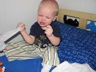 6. I love the sock pulling off and throwing tantrum! And yes, you do have to see the humor in it all for sanity-saving purposes!