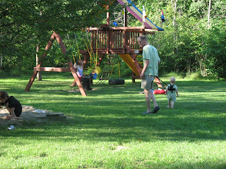 Love the story about trying to carry your little one while walking on wet grass and holding your pants. I've *never* done anything like that before either. LOL