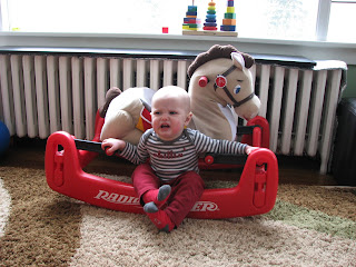 I certainly did not get enjoyment out of my 13 month old son Warren getting stuck in our bouncing pony. What kind of mother would I be if I not only laughed about it but made this poor child stay stuck long enough for me to snap some pictures as he whined and struggled to free himself before helping him out. I wouldn’t do that, now would I? I guess if I did that a picture might be shown below but since I didn’t that must be a figment of your imagination.