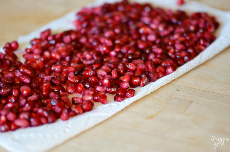 Rinse and gently pat dry pomegranate arils.