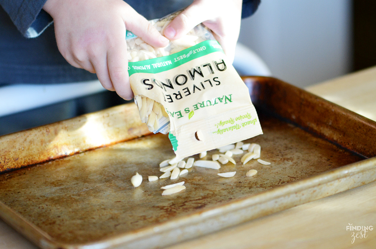 We decided to toast our almonds. While you could easily skip this step, we do appreciate the flavors that come out when they are toasted.