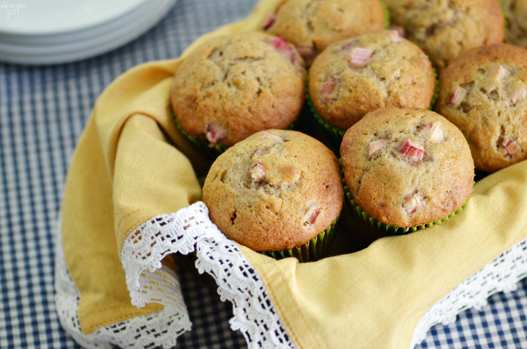 It is rhubarb season! Every year my mom has an abundance of rhubarb in her garden so she always shares some of her bounty with us. Last year we made a homemade strawberry rhubarb sauce and then strawberry rhubarb lemonade. They turned out so good! This year we opted for Rhubarb Banana Muffins for a special morning treat.