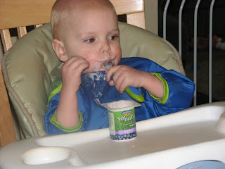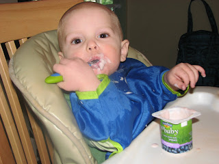 When my youngest son Warren was first being introduced to solid foods I quickly added YoBaby yogurt to his diet as well. It was came as no surprise that he enjoys it as much as Lucian. As a mom I appreciate that it is organic, made with whole milk and full of wonderful nutrients for their growing bodies! The only thing I’ve noticed is the consistency is a little runnier than traditional yogurt and it is necessary to stir the contents as it slightly separates. Neither of these observations are a problem for me! Here are some recent pictures of Warren devouring his yogurt!