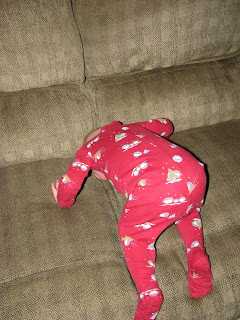 I was wondering how she didnt fall down the back! My boy is the same way. Fun right? haha
