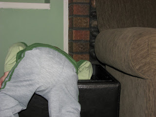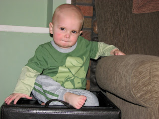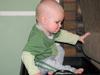Who needs a jungle gym when you have an ottoman? Warren’s routine: climb up onto the ottoman, sit for 3-5 seconds looking all proud at the accomplishment and climb back down. Repeat. Repeat. Repeat. Over and over and over again more than a dozen times until he just can’t quite make it up anymore. Lots of fun to watch!